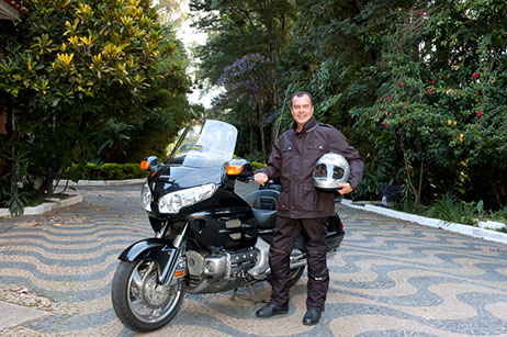 Carvalho, seu batedor, idealizador da M.E.C.A. Moto-Escolta, experiente motociclista e apreciador de grandes motos, está pronto para